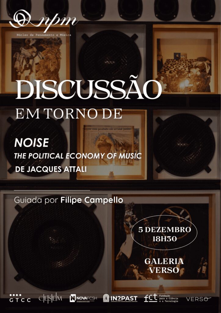 No dia 5 de dezembro, às 18h30, na Galeria Verso, o Núcleo de Pensamento e Música (NPM) irá realizar uma sessão de leitura e discussão em torno do prefácio e primeiro capítulo da obra Noise: The Political Economy of Music de Jacques Attali.