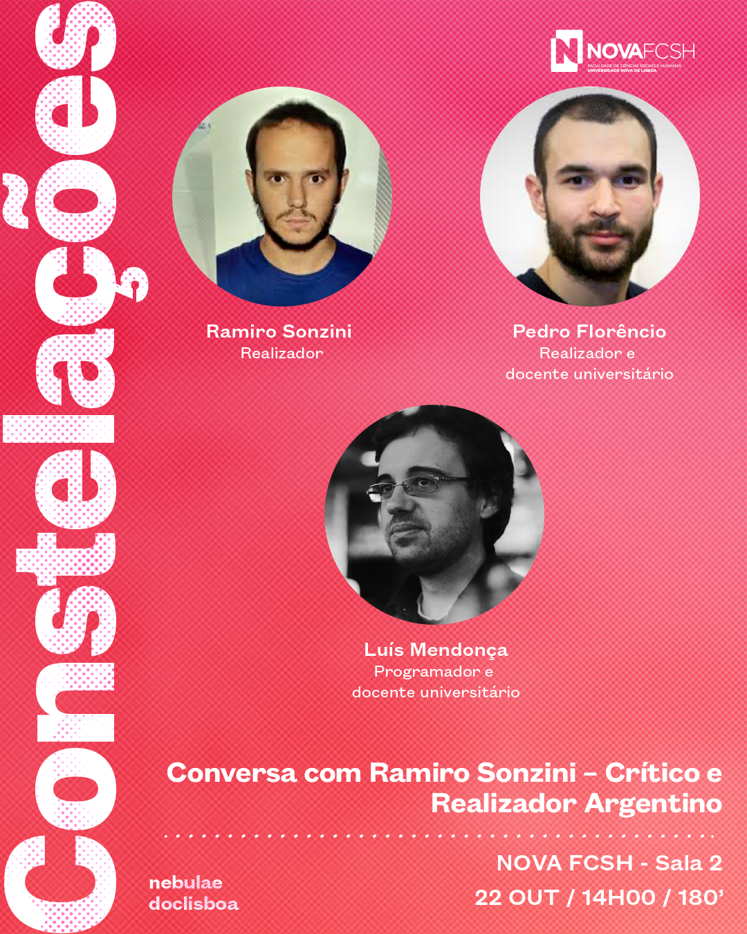 Para marcar a 23.ª edição do festival, a NOVA FCSH recebe o argentino Ramiro Sonzini, fundador da revista online La Vida Útil e coautor do filme La noche está marchándose ya (The Night Is Fading Away), apresentado em competição internacional nesta edição do festival.